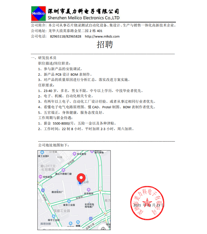 高薪招聘研发技术员...